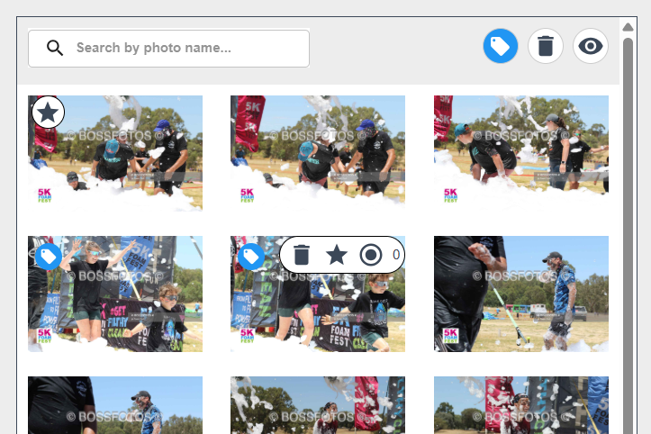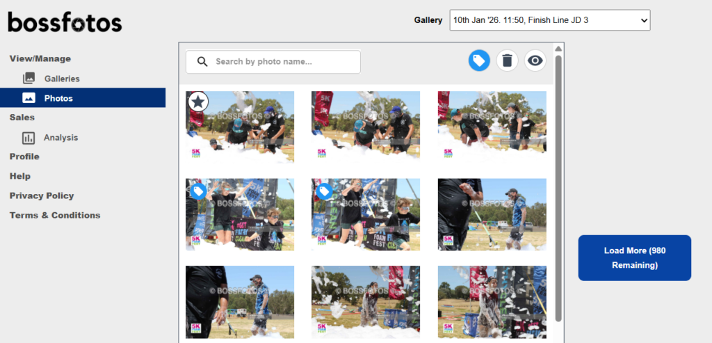 Once the gallery has loaded select the “sales tag icon” at the top of the photos and it will turn blue. It will also add a blue tag to every photo that has been sold.